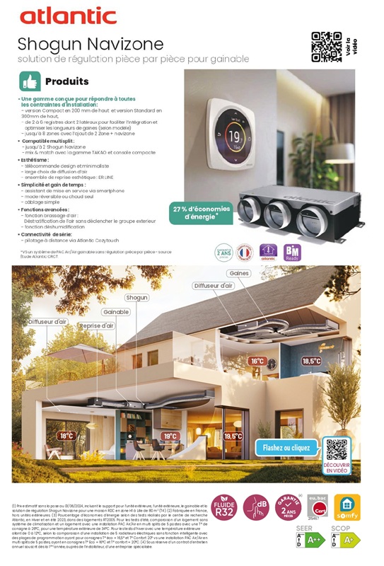 Le système gainable avec régulation pièce par pièce (marque Airzone ou Atlantic-Shogun) est un accessoires aérauliques composés de registres motorisés pilotés par thermostats. Cet accessoire s’ajoute au soufflage de l’unité gainable, et permet de régler la température indépendamment dans chaque pièce.