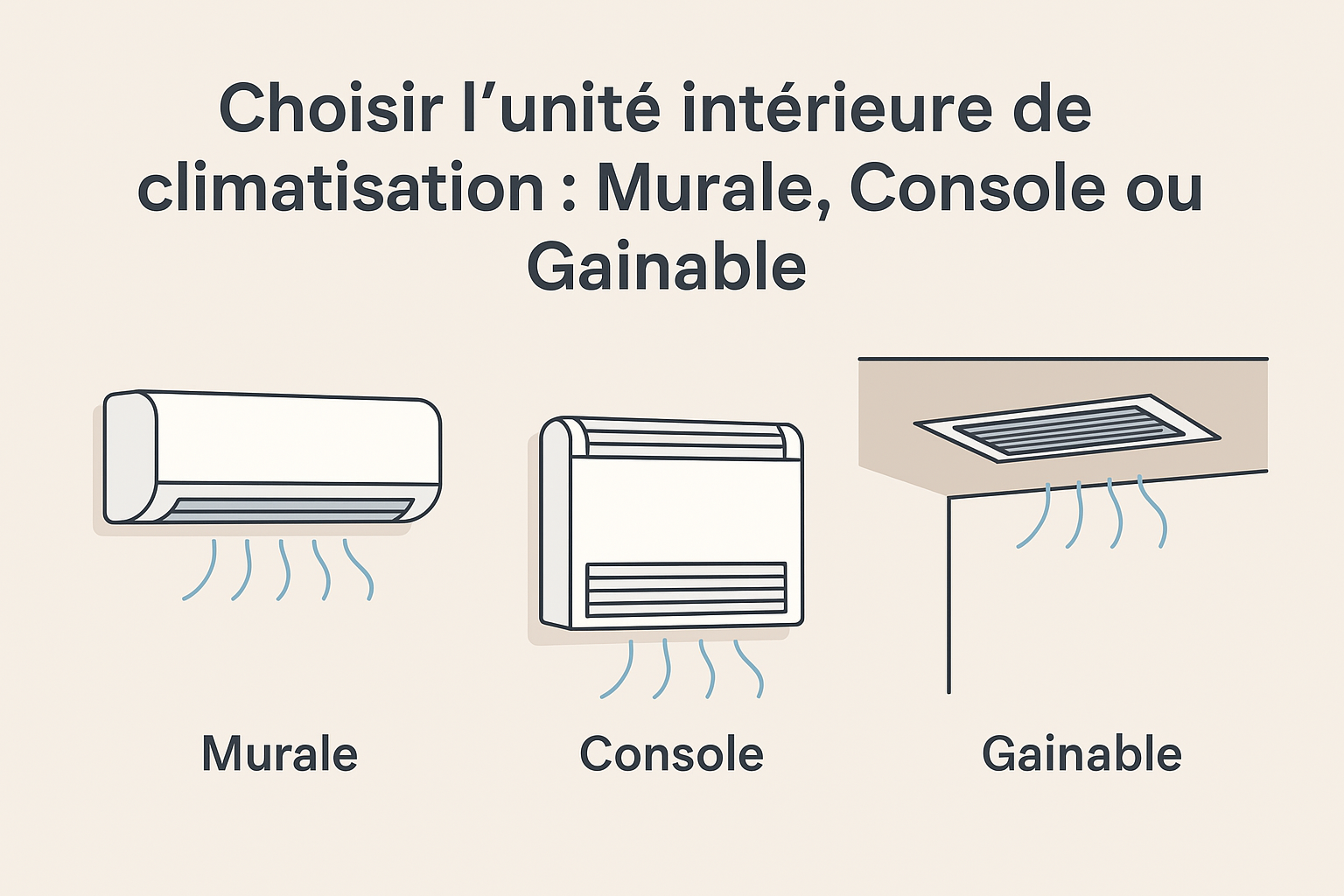 Esthétique et emplacement : Si l’esthétique est une priorité, les unités gainables offrent une solution discrète, tandis que les consoles assurent une diffusion d’air homogène.
