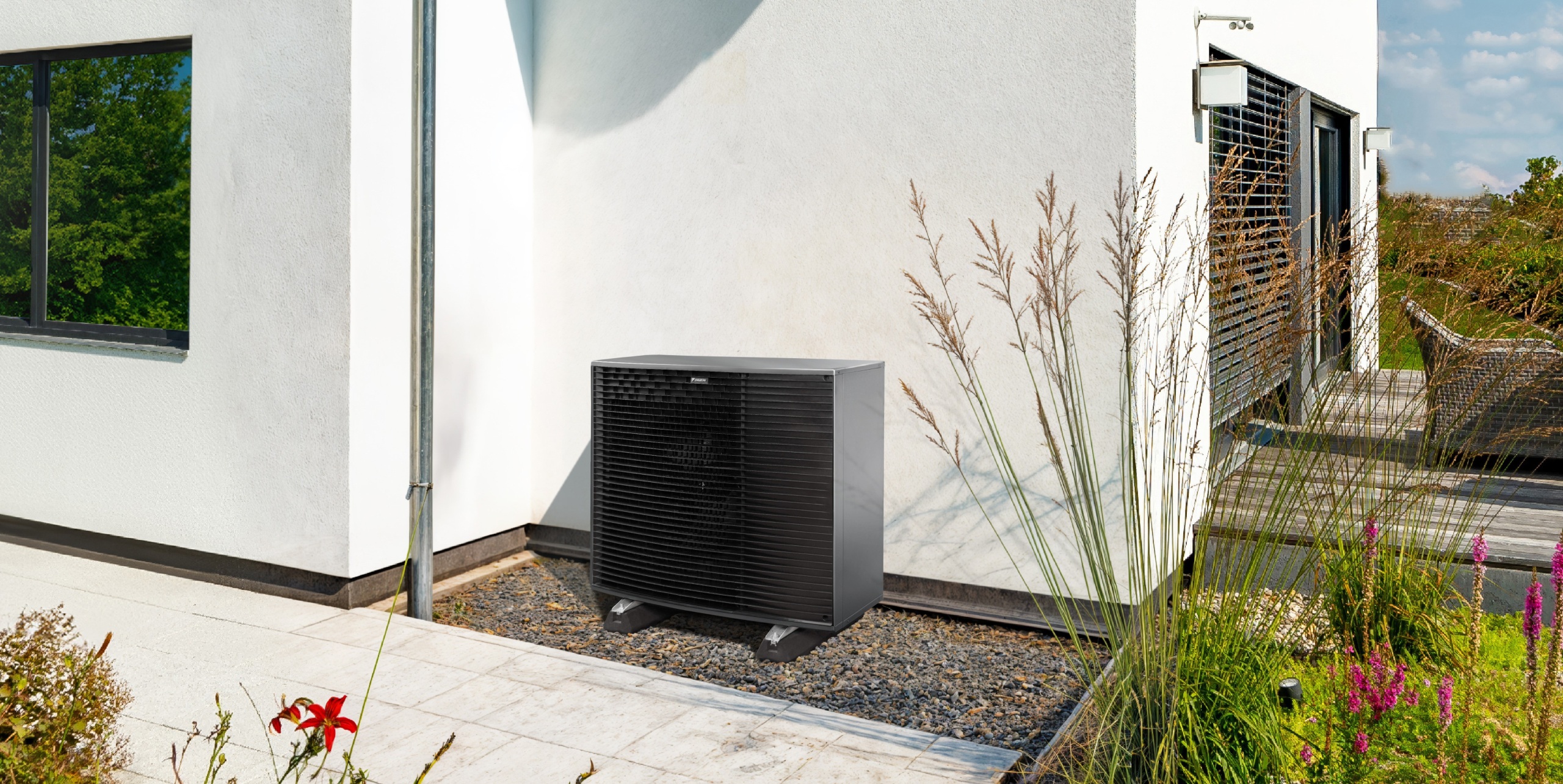 La pompe à chaleur s’intègre facilement autour de votre habitation tout en restant particulièrement silencieuse.