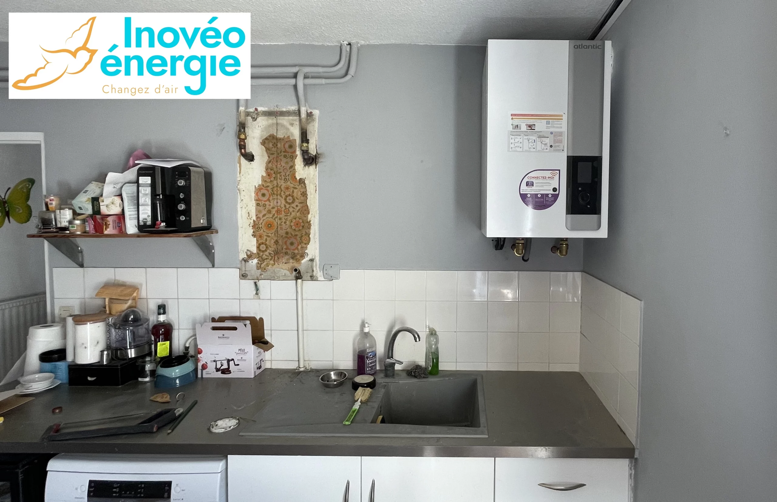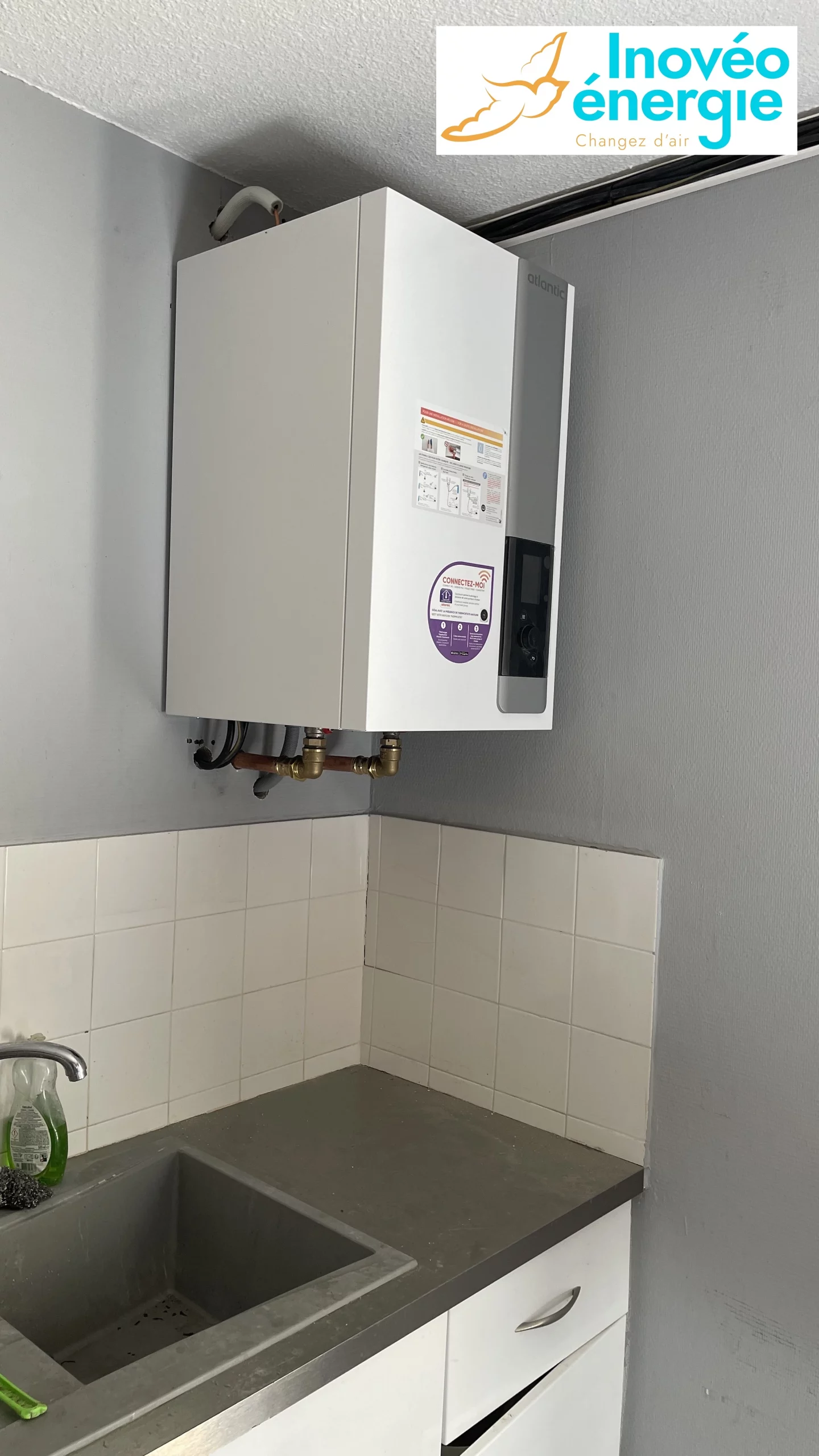 En effet, en plus des travaux d’isolation, Mme S. nous a confié la mise en place d’un chauffage par pompe à chaleur air-eau sur sur son ancienne installation de chauffage gaz, la mise en place d’un chauffe-eau thermodynamique, d’une vmc simple flux hygroréglable et d’une climatisation pour son séjour.